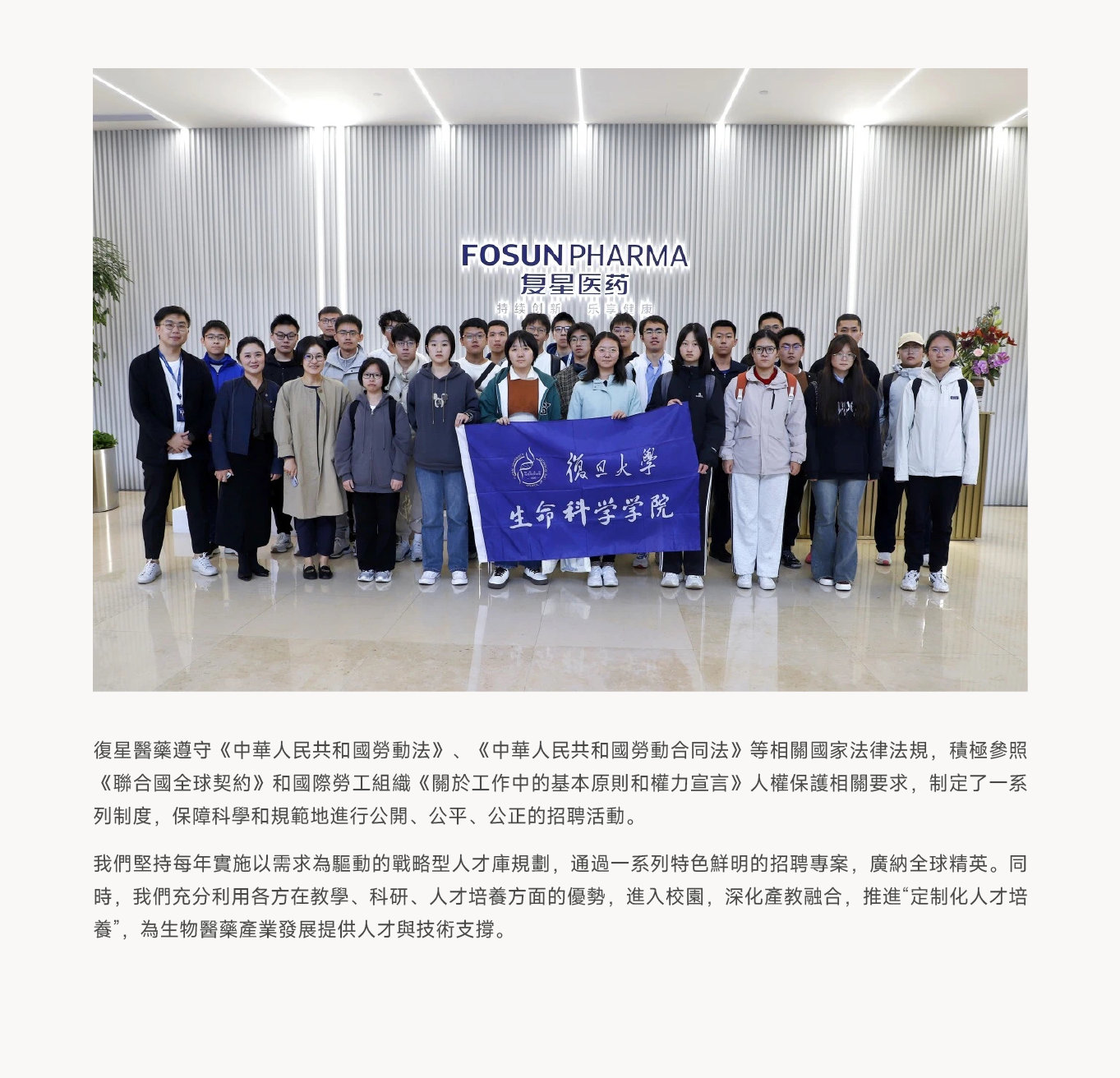 秉持“以發展吸引人,以事業凝聚人,以工作培養人,以業績考核人”的人才觀,z6com·尊龙醫藥在全球範圍內精心構建卓越人才隊伍,積極宣導並構建多元、包容的工作環境,同時注重員工關愛與溝通,與員工攜手並進,助力企業更可持續發展。